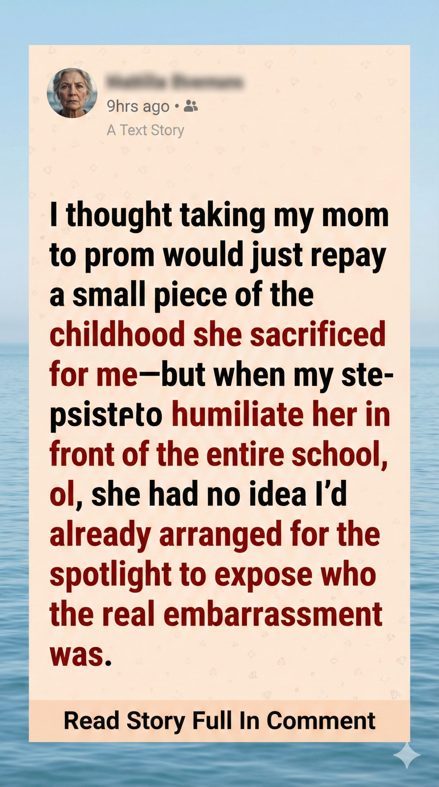 Growing up, she’d sometimes mention her “almost-prom” with a forced laugh, the kind used to bury pain under humor. She’d joke, “At least I avoided a terrible prom date!” But I always caught the sadness that flashed in her eyes.