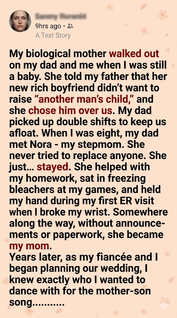 She completely ignored Nora and marched right up to me, arms outstretched. “My handsome boy,” she cooed loudly, ensuring the nearby guests could hear. “I wouldn’t miss my son’s big day for the world. My husband and I are ready to take care of the bar tab, of course.”