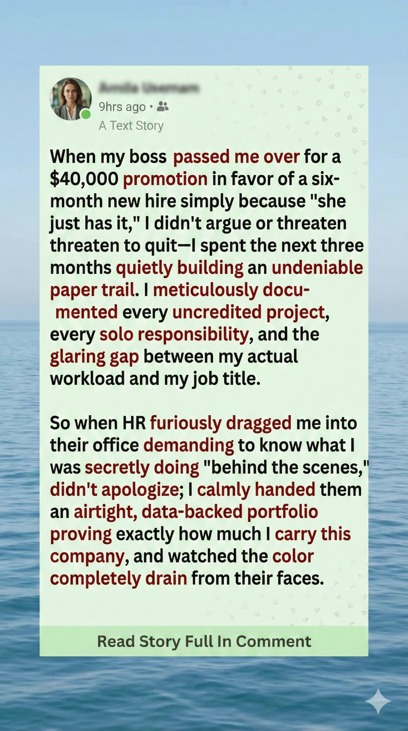 Workplaces often talk about teamwork and fairness, but those ideas can fade fast once real decisions are made behind closed doors. Promotions are supposed to reflect dedication, yet many people discover that effort doesn’t always win. It’s easy to stay quiet, afraid of being labeled jealous or bitter. But sometimes one moment hits so deeply that silence no longer feels like an option.