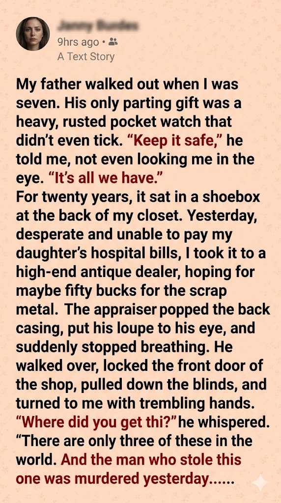 He shoved the heavy brass watch back into my hands, along with a laminated black card bearing only a phone number. “Go! If they find it on me, I’m dead anyway. Call that number from a burner phone. Ask for Director Vance. He’s the only broker who can liquidate those assets without tipping off the cartel.”