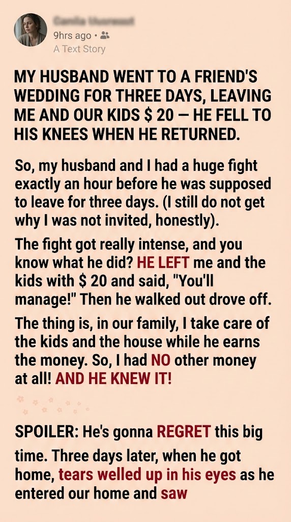 “We ate like kings all weekend. The kids are happy, the bills are paid, and look at that—I managed so well, I didn’t even need your money.”
