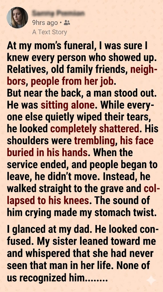 He looked down at the freshly turned earth of my mother’s grave, his jaw tightening. “My name is Marcus. Fifteen years ago, I was nineteen, addicted to heroin, and sleeping in the alley behind the bakery your mom used to visit on Tuesday mornings.”