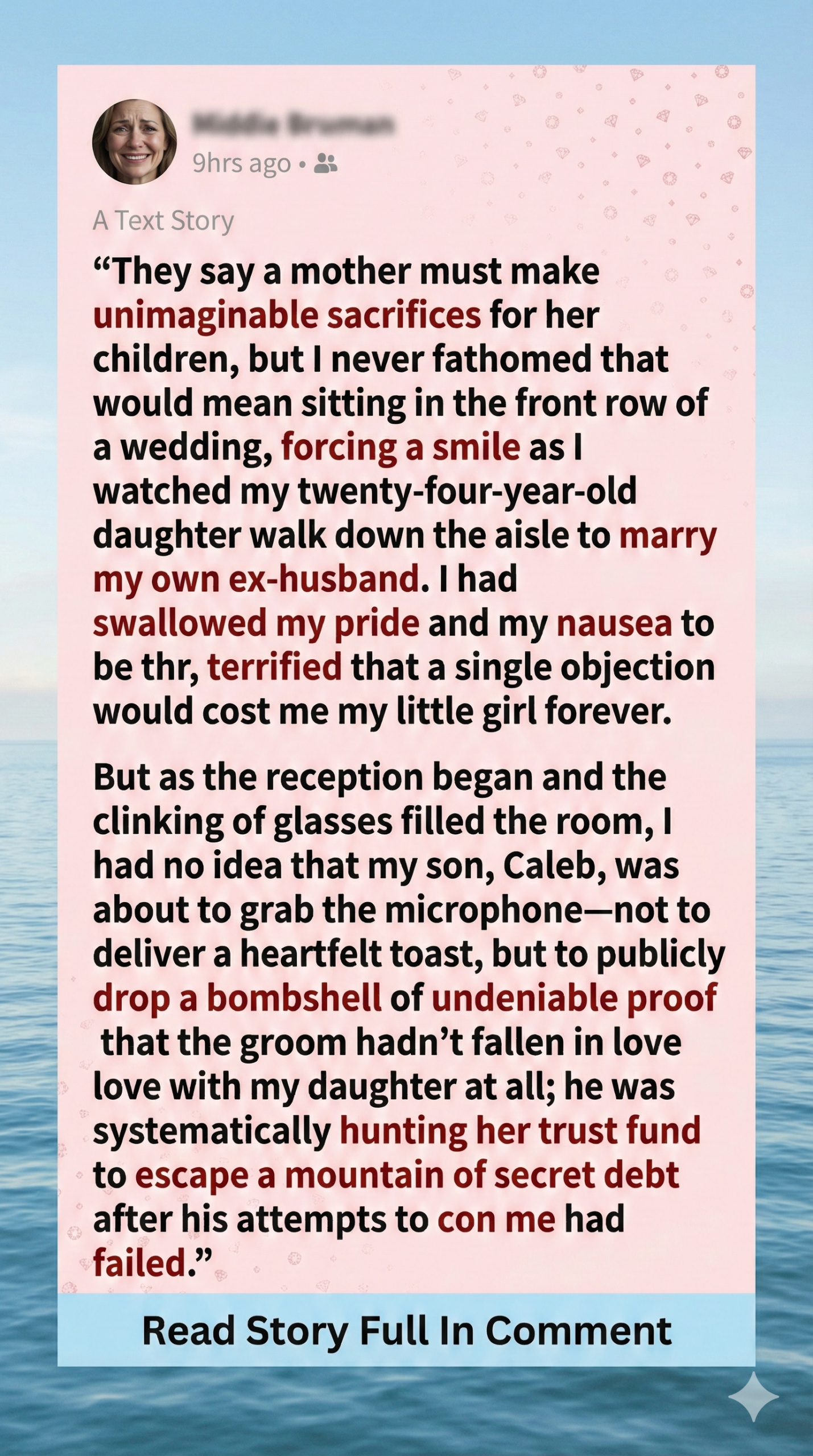 They say weddings bring families together, but mine nearly tore us apart. I never imagined I would live to see my ex-husband marry my daughter. And I certainly never expected the truth to come crashing down on their wedding day—delivered by my son, Caleb—in a way so public it made my knees shake.