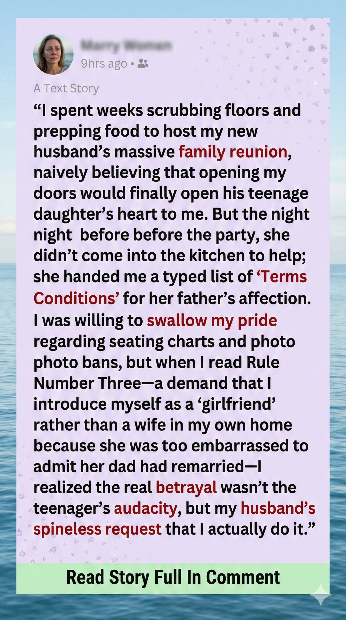 I was right to refuse to lie. Marriages don’t work if one partner is asked to disappear to keep other people comfortable. Hosting a reunion while playing “mystery girlfriend” would set a terrible precedent: it teaches everyone that my place in the family is negotiable by whoever is loudest.