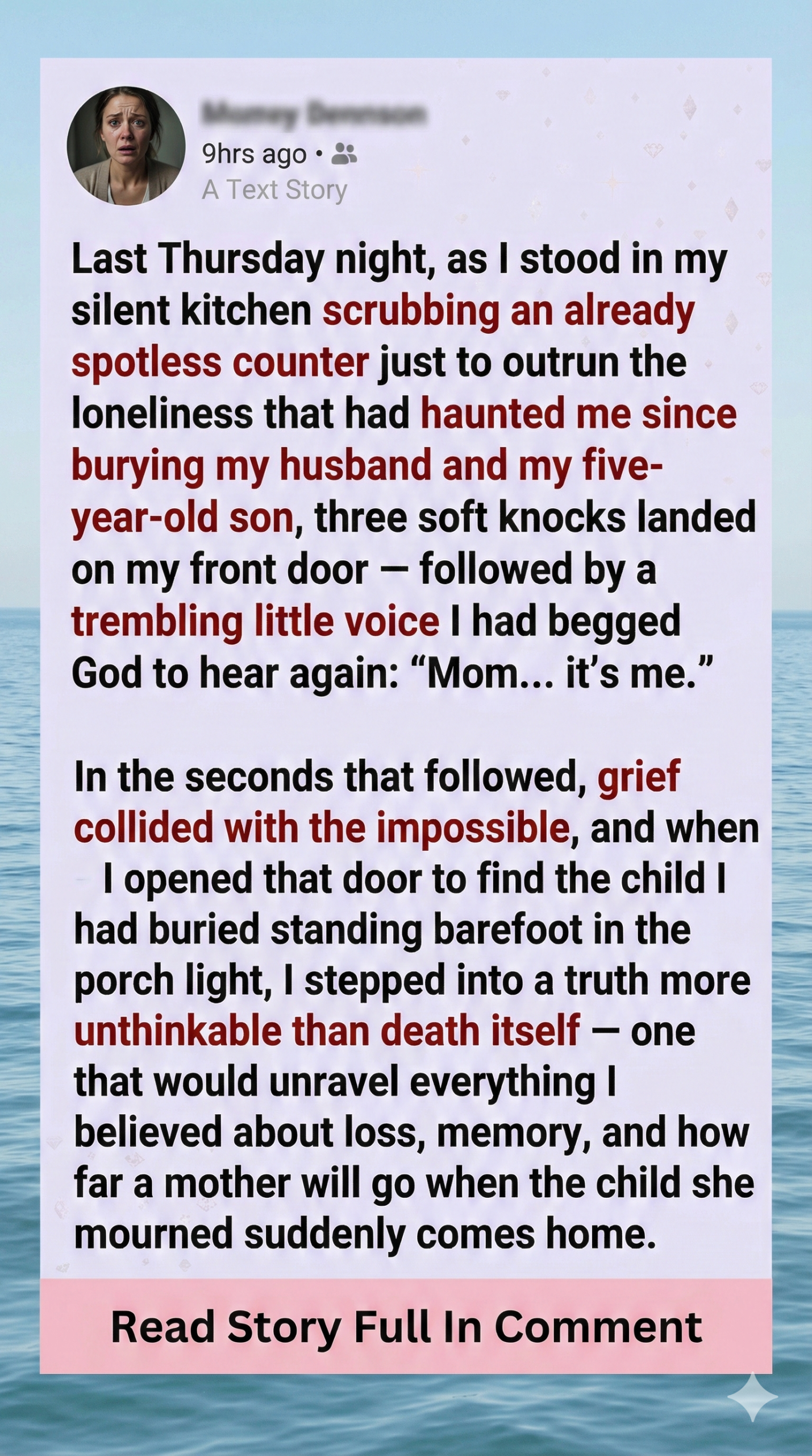 Two years ago, I watched a tiny casket disappear into the ground and thought that was the end. Last Thursday, my door shook with three soft knocks, and a little voice said, “Mom… it’s me.” And somehow, against every rule I thought the universe had, I opened the door…