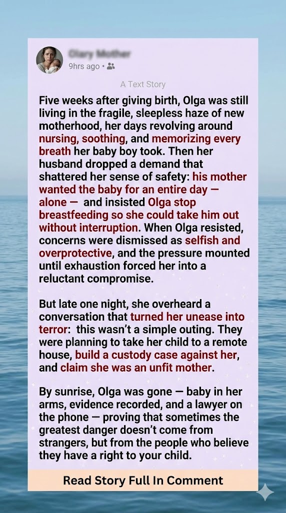 Five weeks after giving birth, Olga was still adjusting to the rhythm of motherhood—sleepless nights, tender bonding, and the quiet joy of nursing her baby boy. But her peace shattered when her husband Juan announced that his mother, Ruth, wanted a full day alone with the baby. Ruth insisted Olga switch to bottle-feeding so she could take the child out without interruption.