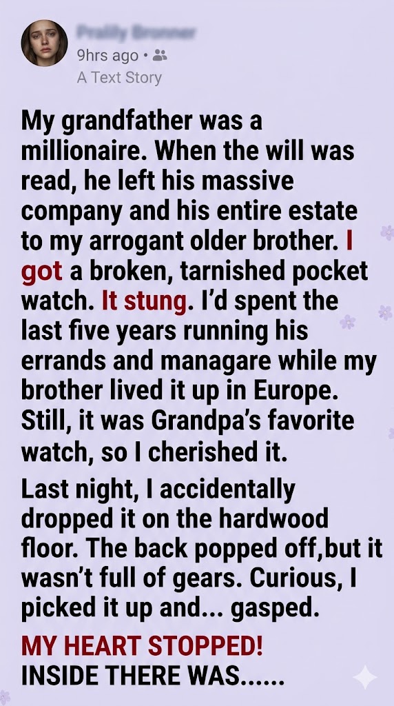 I looked down at the tarnished pocket watch sitting on the patio table. It didn’t tick anymore, but it didn’t need to. It had already delivered perfectly on time. I smiled, polished the scuffed brass with my thumb, and closed the laptop.