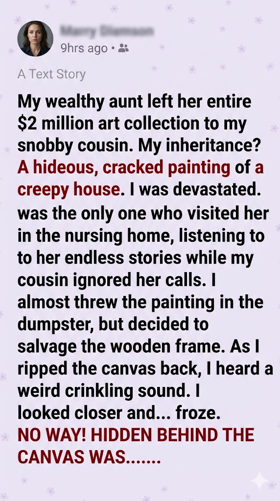 My heart hammered against my ribs as I carefully pulled the items free. For a moment, I just sat there on the floor of my tiny apartment, surrounded by the splintered remains of the ugly painting, staring at the hidden cache.
