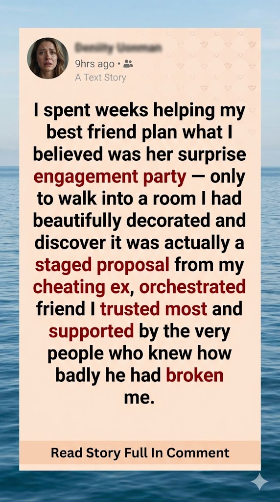 I stared at her, the pieces slowly clicking into place. This wasn’t Sophie and Ryan’s engagement party. This was Jason’s proposal to me. I had unknowingly helped decorate and cater the entire event.