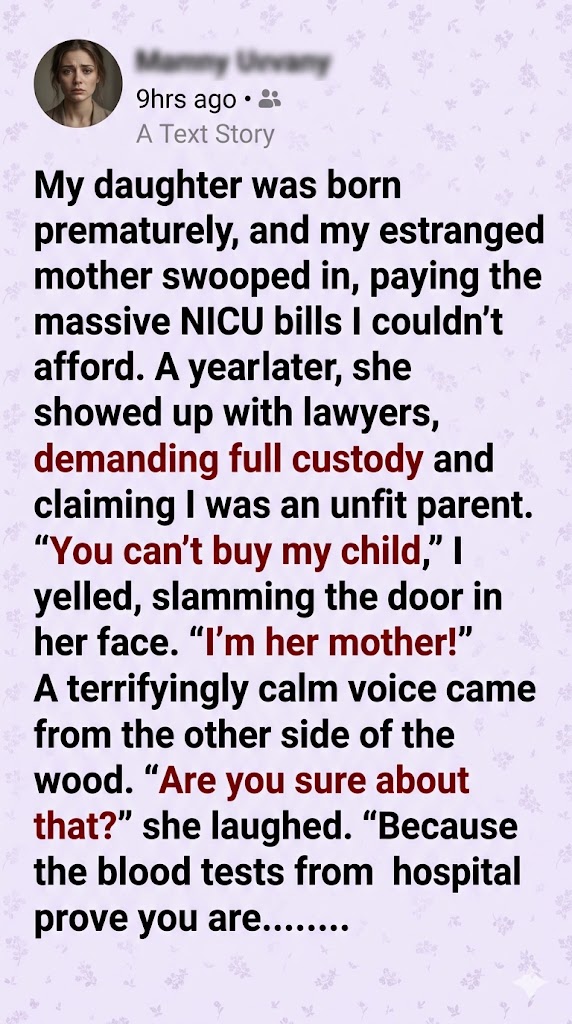 Six weeks later, we faced Eleanor in a mahogany-paneled courtroom. She sat perfectly composed, flanked by three high-priced attorneys. Her petition was simple: I was genetically unrelated to the child, emotionally unstable, financially insecure, and therefore unfit. She, the biological grandmother (through David, whom she suddenly claimed to adore), was the only logical guardian.