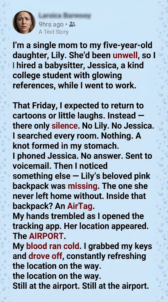 I’m a single mom to my five-year-old daughter, Lily. She’d been unwell, so I hired a babysitter, Jessica, a kind college student with glowing references, while I went to work. That Friday, I expected to return to cartoons or little laughs. Instead — there was only silence. No Lily. No Jessica.