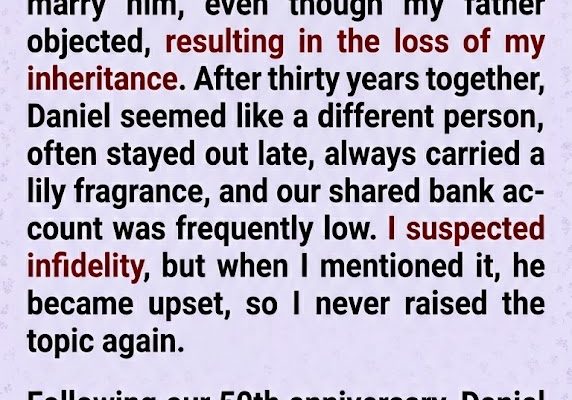 At first, Margaret told herself it was her imagination, but things didn’t change. Two years later, Daniel still came home every night, still smelled of lilies, and worse of all, there was no extra money in their joint account.