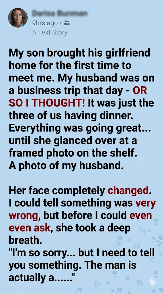 Laura thought meeting her son’s girlfriend would be a joyful milestone. Instead, one family photo exposed a devastating secret: Sophie recognized the man in the frame. He wasn’t just Ryan’s father—he was living a double life. What followed was a night of betrayal, confrontation, and the collapse of a twenty-year marriage.