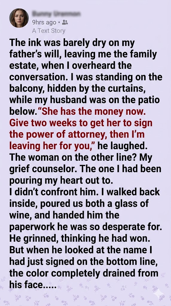 I walked around the counter, my heels clicking sharply against the wood, and delicately plucked the document from his frozen, bloodless grip.