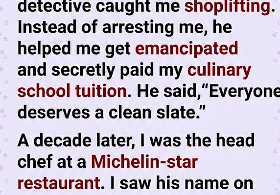 My feet felt like lead, but my chest pounded with a frantic, desperate rhythm. I crossed the dining room, smoothing my chef’s coat with trembling hands. As I approached the table, Detective Miller looked up. Age had frosted his hair, and the lines around his eyes were deeper, but his smile was exactly as warm as it had been the night he pulled me out of the back of a squad car.