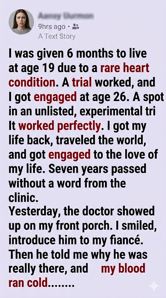 I turned back, expecting to see the warm, paternal smile that had kept me tethered to hope when I was nineteen and dying in a sterile hospital bed. Instead, Dr. Vance stood rigid. He looked older, his face etched with deep lines of stress, but his eyes were entirely devoid of warmth. He didn’t step onto the welcome mat. He stayed exactly one pace back, casting a long shadow across my porch.