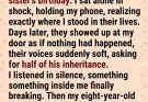 His voice sent a violent shudder down my spine. It was Davidâs voice, but rougher, rusted from disuse. He wasnât wearing the sharp, tailored suit David had left in three days prior; he was in faded jeans and a canvas jacket that looked a decade old.