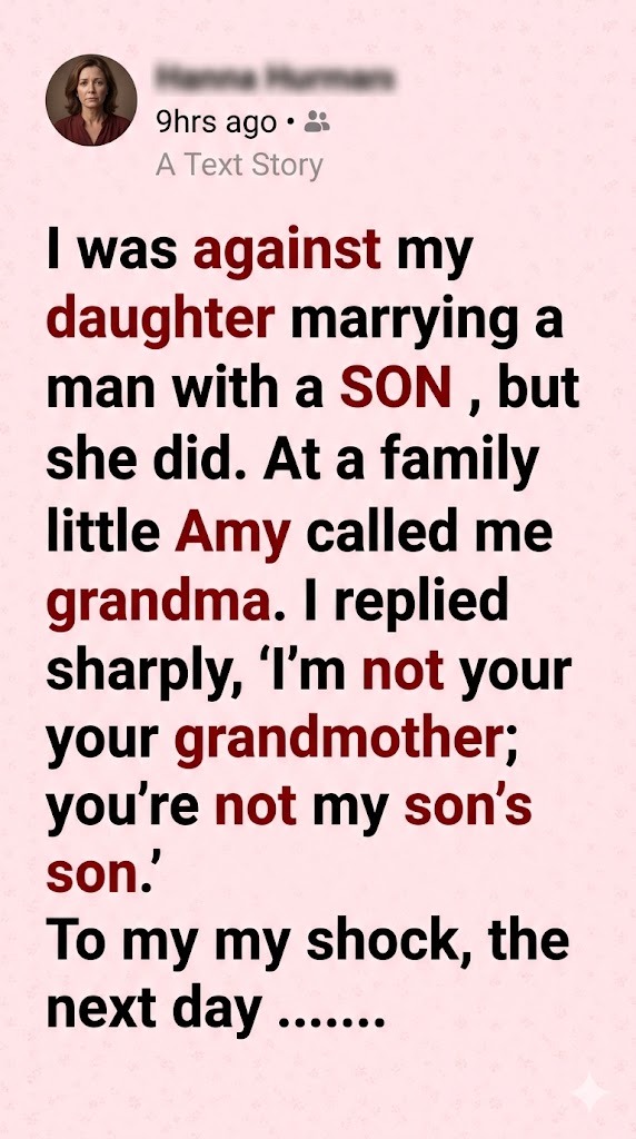I was against my daughter marrying a man with a child, but she did. At a family lunch, little Amy called me grandma. I was so blinded by my own rigid expectations—and so used to doting only on my eldest boy’s children—that the words tumbled out as a cruel, nonsensical jumble. I replied sharply, “I’m not your grandmother; you’re not my son’s son.”