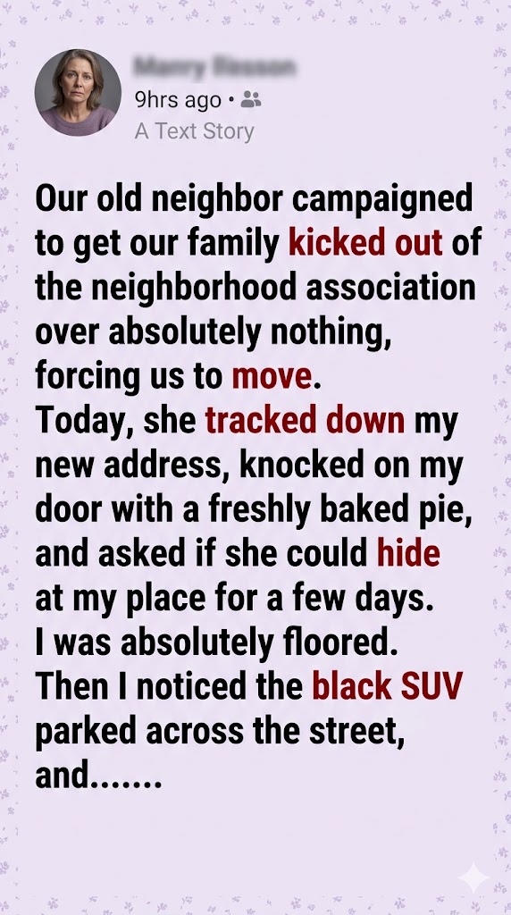 “Please,” Helen whispered, her voice entirely stripped of the shrill, authoritative tone that used to terrorize our cul-de-sac. “They’ve been following me since Tuesday. You have to let me in.”