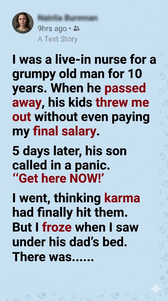 “To my dearest nurse. If you are reading this, it means my greedy, impatient children have shown you the door the second my body was cold. I always knew they would. Inside this box is my updated will, the deeds to the estate, and bearer bonds worth more than they can comprehend. The code is six digits. It is the date of the only day in the last twenty years I felt truly lucky. Claim it, take what is yours, and tell them to get out.”