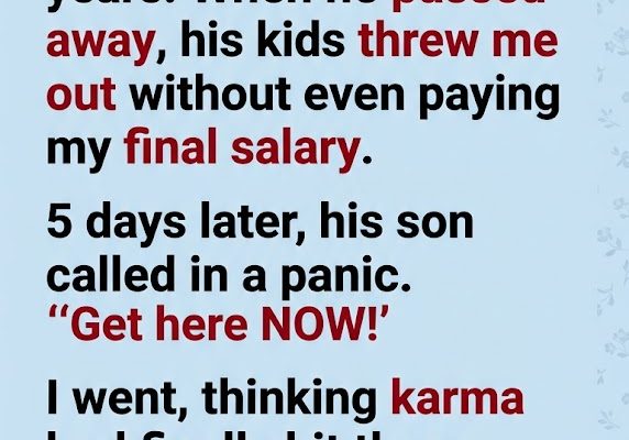 When Arthur’s heart finally gave out, his kids descended on the estate like vultures. Within twenty-four hours of the funeral, Richard had changed the locks, handed me my packed suitcases, and sneered, “We won’t be needing your services anymore. And don’t expect a severance.” They didn’t even pay my final month’s salary. I left quietly, too exhausted to fight, assuming that was the end of it. Until the phone call.