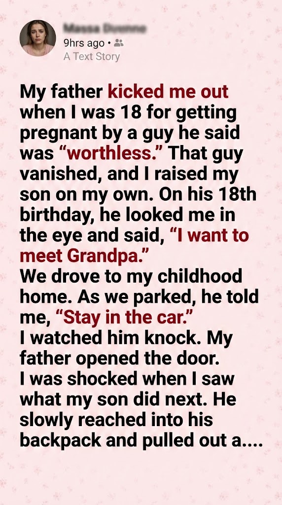 My father kicked me out when I was 18 for getting pregnant by a guy he said was “worthless.” That guy vanished, and I raised my son on my own. On his 18th birthday, he looked me in the eye and said, “I want to meet Grandpa.”