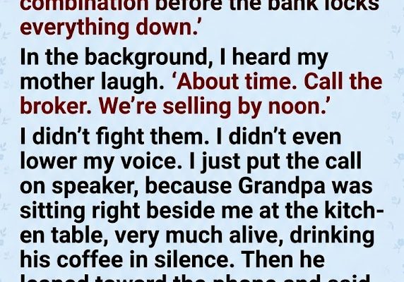 I didn’t fight them. I didn’t even lower my voice. I just pulled the phone away from my ear and tapped the speaker icon. I did this because Grandpa was sitting right beside me at the kitchen table, very much alive, drinking his black coffee in absolute silence.