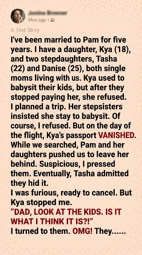 I filed for divorce from Pam the following Monday. Since the house was mine from before the marriage, I gave Tasha and Danise thirty days to vacate. They tried to play the “single mom” card on social media to shame me, but once Kya posted the truth about the stolen passport and the chickenpox scheme, the family turned on them.