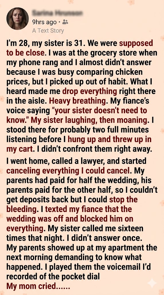 The fallout was nuclear. My sister tried to spin a web of excuses. First, she claimed it was a deepfakeβan absolute joke considering the hyper-specific details they whispered to each other about my wedding dress. When that failed, she switched to playing the victim. She texted me paragraphs about how they had “fallen in love organically” and how she didn’t want to hurt me, but she couldn’t deny her heart.