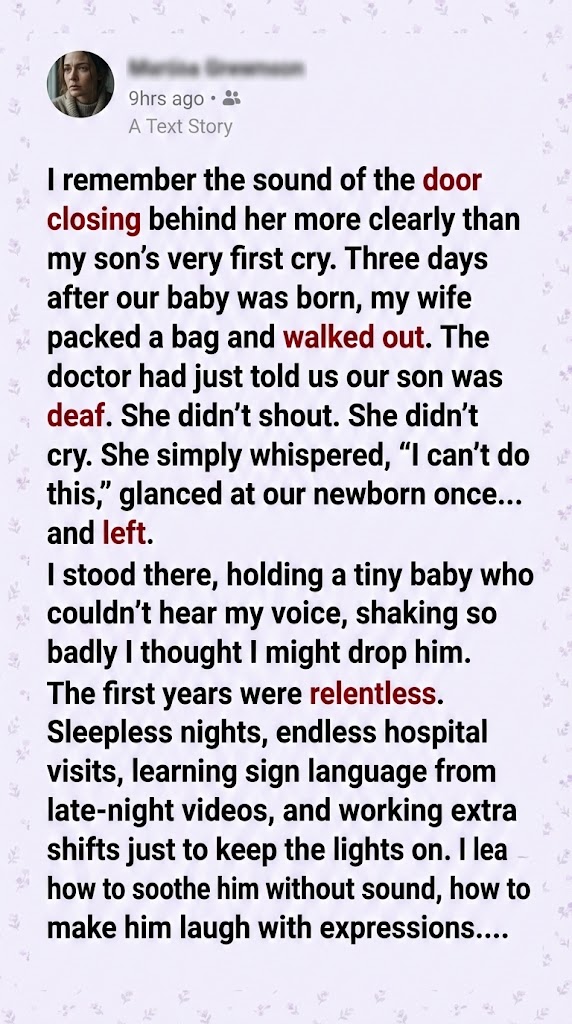 The silence around us was deafening, but in my heart, it was the loudest cheer I had ever heard. I thought back to the sound of the door closing twenty-two years ago. I used to think that was the moment my life shattered. But looking at my son now, I realize that the door didn’t close on my happiness. It simply closed out the noise, so I could focus on the music that really mattered.