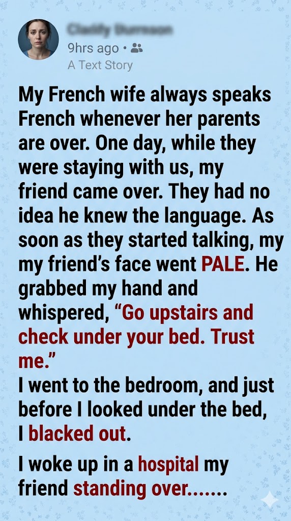“You told me to check under the bed,” I said, my voice barely above a whisper. “But I blacked out before I could look. Did someone hit me?”