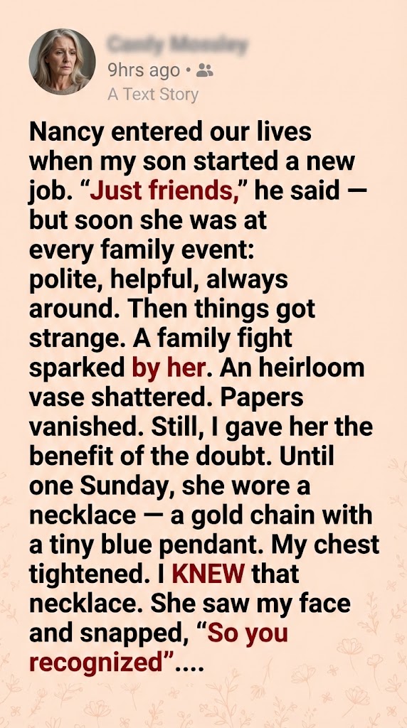 My son, David, laughed nervously, looking between us. “Recognized what? Nancy, what are you talking about? Mom?”