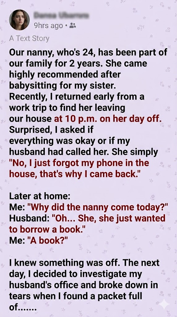 The next morning, I packed a small suitcase, telling him my work trip had unexpectedly been extended. But before walking out the front door for the last time, I took a random book from the shelfโ€”the one he claimed she had wanted to borrowโ€”and left it sitting squarely in the middle of his desk.