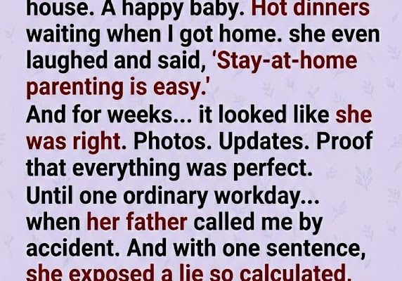 When my wife volunteered to stay home with our baby so I could return to work, I thought I had won the marriage lottery. A spotless house. A happy baby. Hot dinners waiting when I got home. She even laughed and said, “Stay-at-home parenting is easy.” And for weeks… it looked like she was right. Photos. Updates. Proof that everything was perfect. Until one ordinary workday… when her father called me by accident. And with one sentence, he exposed a lie so calculated, so deliberate, that my stomach dropped to the floor. Because the woman I trusted with our child wasn’t the woman I thought she wasโand the life I was praising had never actually existed at all.