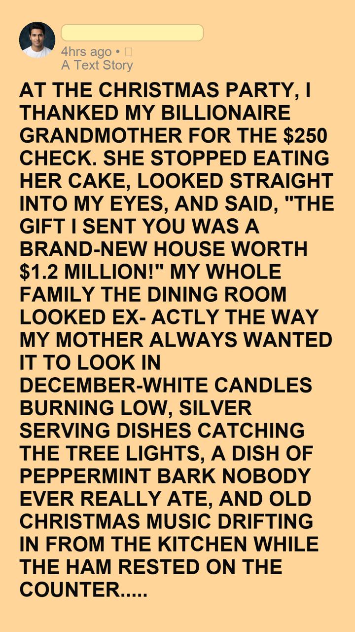 The dining room looked exactly the way my mother always wanted it to look in Decemberβ€”white candles burning low, silver serving dishes catching the tree lights, a dish of peppermint bark nobody ever really ate, and old Christmas music drifting in from the kitchen while the ham rested on the counter. It was a picture-perfect holiday scene, meticulously curated for social media.