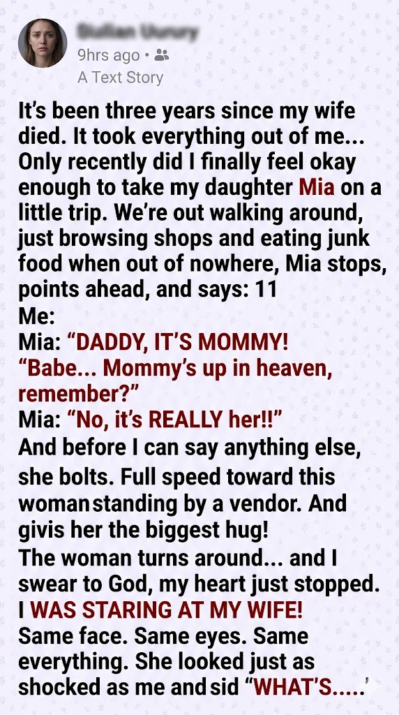 Finding Claire didn’t bring my wife back. It didn’t magically erase the three years of agonizing grief, the empty side of the bed, or the pain of raising a daughter alone. But as I sat there and watched Claire laugh at one of Mia’s silly jokesβ€”a laugh that echoed straight out of my best memoriesβ€”the heavy stone in my chest felt just a fraction lighter.