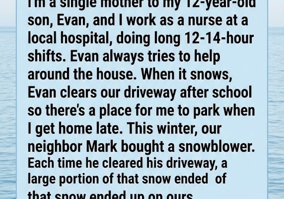 “The problem,” I said calmly, “is that my son shovels that driveway after school so I can park safely at night. And every time you clear yours, you undo his work.”