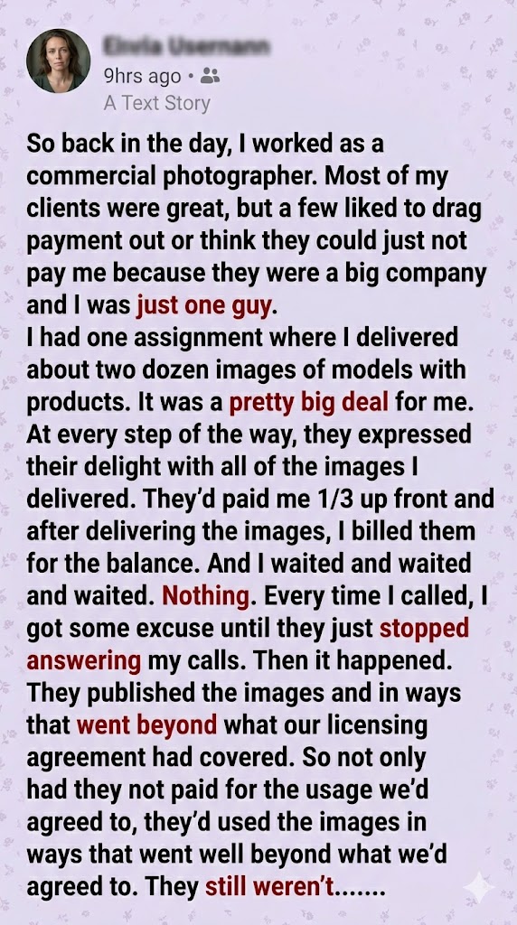 We settled out of court three weeks later. They paid the original outstanding balance, covered all of my legal fees, and paid a massive retroactive licensing premium for the expanded usage. The final wire transfer was roughly ten times the amount of the original contract.