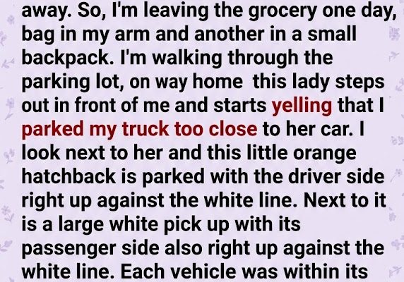 She crossed her arms, aggressively blocking my path, fully convinced she had caught the culprit. “I’m calling a tow truck if you don’t take out your keys and back it up right now.”