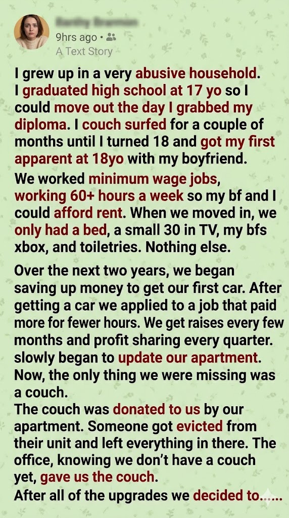 We ordered a pizzaβ€”a luxury we never would have dared to afford back when we were pulling those 60-hour weeksβ€”and sat together on that donated, slightly worn-in couch. For the longest time, survival had been our only baseline. When you grow up in an environment where you constantly have to watch your back, and then immediately transition into grinding just to keep a roof over your head, your brain never really leaves “fight or flight” mode. You’re always waiting for the other shoe to drop.