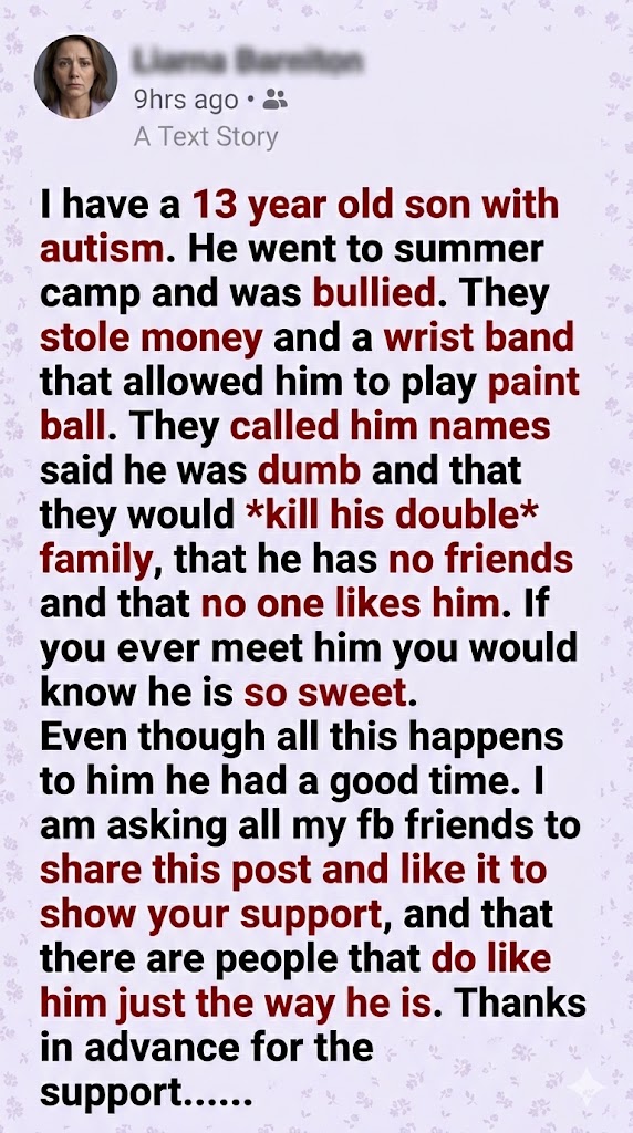 His autism means he processes the world differently, often missing the malice that neurotypical people wear like armor. His heart is an open door, incapable of holding onto the darkness others try to force inside. But as his parent, I felt that darkness for him. I couldn’t let those bullies have the last word. I needed him to know that the world wasn’t just made of cruel kids at summer camp.