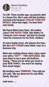 A few weeks after the cake incident, we were seated at Sunday lunch when Joyce decided to launch another calculated attack. She leaned in conspiratorially, her expression falsely sweet, advising me that once I had Mark’s “real children,” things would become “easier,” suggesting I could stop “stretching myself so thin.” I shut her down instantly, stating firmly, “We are adopting my brothers, Joyce. They are our kids.” She simply waved her hand dismissively, asserting that “legal papers don’t change blood.” Mark finally intervened, his voice low and intensely annoyed. “Mom, that is enough,” he commanded. “You must stop disrespecting them. They are children, not obstacles to my happiness. Stop talking about ‘blood’ like it matters more than actual love.” Predictably, Joyce immediately adopted her default position, wailed that everyone “attacks” her, and then slammed the front door dramatically upon her exit. I knew she was the type of person who would never relent until she felt she had conclusively won.