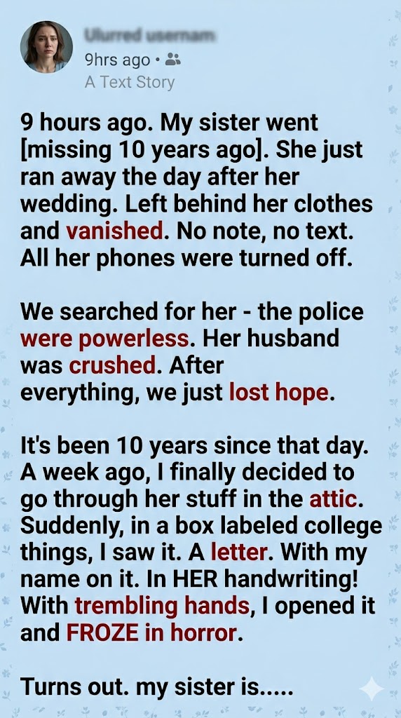 I read further. My sister detailed offshore accounts, aliases, and a terrifying, violent history she had only uncovered hours after saying ‘I do.’ She had staged her own disappearance to protect us, knowing that if she went to the police, his connections would ensure she never made it to trial. She left the letter in the ‘college things’ box knowing David would never care to look there, but hoping one day I would.