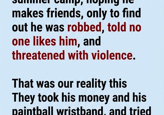 When pick-up day finally arrived, the camp director pulled us aside before we even saw him. The words she spoke felt like physical blows. A group of older boys in his cabin had targeted him. They cornered him behind the mess hall, snatched the twenty dollars he had saved for the canteen out of his pocket, and ripped his hard-earned paintball wristband right off his arm. Worse than the theft were the words. They told him he was weird, that no one liked him, and promised to beat him up if he told a counselor.