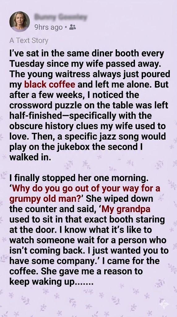 Over the next few months, Tuesday mornings transformed. We didn’t talk incessantly—I was still a man of few words, and she had a diner to run—but the silence between us was no longer hollow. It was comfortable. I learned her name was Clara. I learned she was taking night classes, scraping by on tips while trying to get her degree in education. The history clues on the crossword weren’t just a coincidence; she was struggling with her World History modules and using the puzzles to jog her memory.