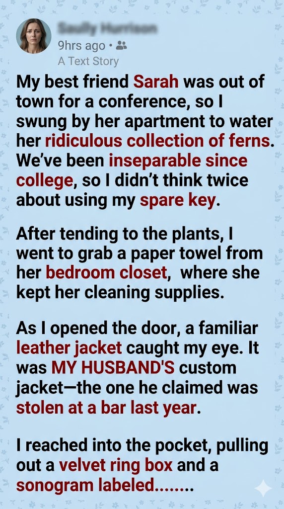 For ten minutes, I just sat there in the shadows of the closet, surrounded by the scent of lavender cleaner and my husband’s distinct sandalwood cologne. The betrayal tasted metallic in my mouth. They hadn’t just crossed a line; they had built an entire hidden life behind my back. The “stolen” jacket, the sudden weekend golf trips David started taking, Sarah’s mysterious, wealthy new boyfriend she kept making excuses not to introduce me toβthe pieces snapped together with sickening clarity.