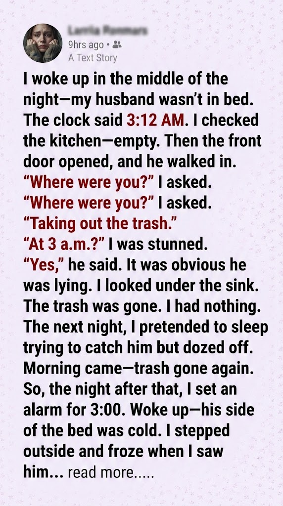 I stood up, numb, and walked back toward the house. As I closed the door, I looked at the clock. 3:12 AM.