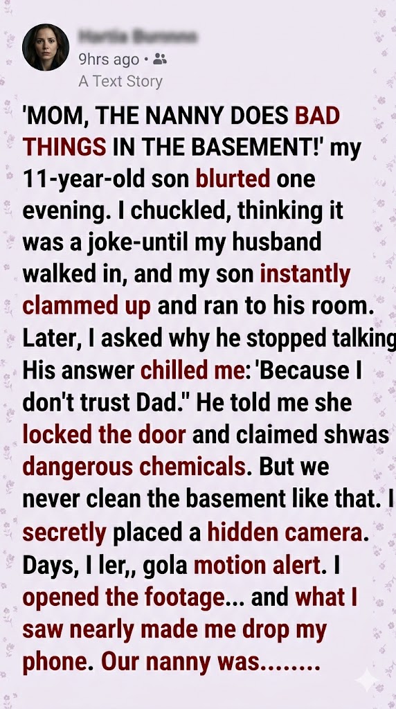 When Jenna’s 11-year-old son Ethan said their nanny Talia was hiding something in the basement, she dismissed it—until he insisted she locked the door, lied about chemicals, and met someone there. He’d also grown oddly distrustful of his father, Derek.