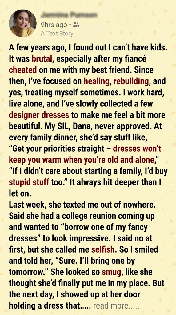 Her face turned a shade of crimson that actually would have matched my designer gown perfectly. “You’re being a petty witch,” she hissed. “I need a real dress.”
