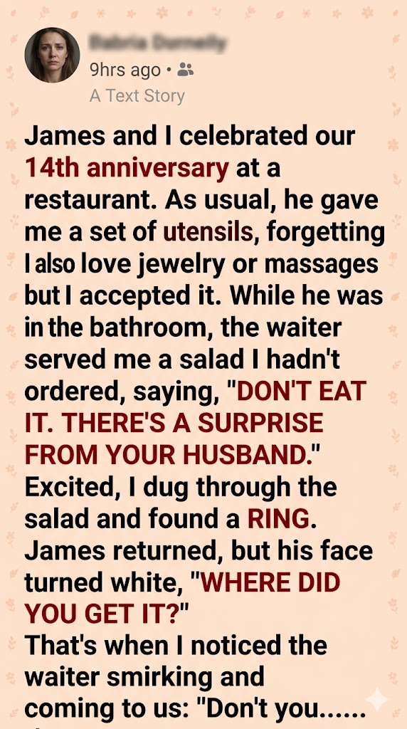 “Oh, it’s the right table,” the waiter chuckled, his eyes locked dead on my husband. “Though I suppose it’s the wrong partner. Tell her, James. Tell her why you were browsing Tiffany’s on your ‘solo fishing trip’ to Maine last month.”
